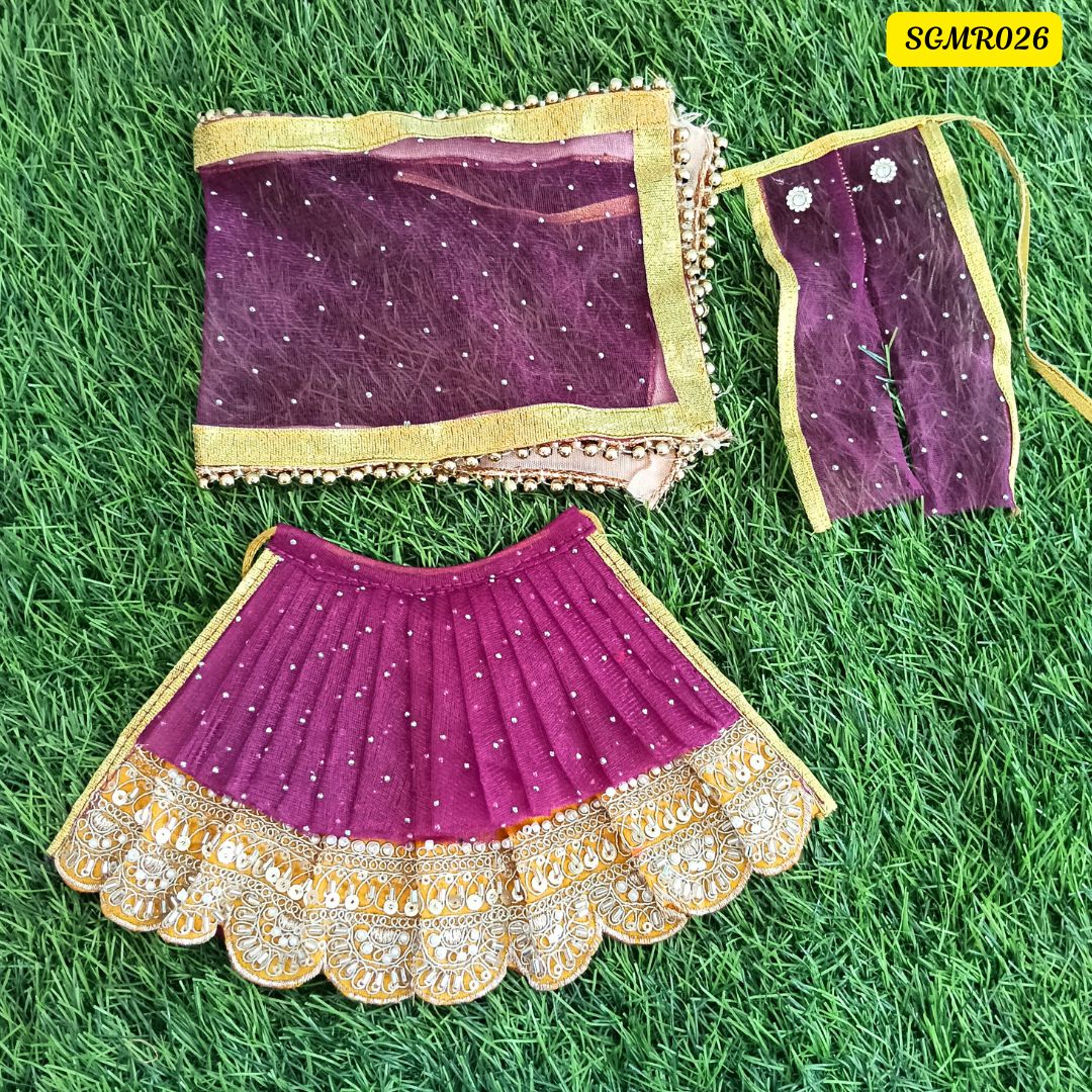 Dress your Mata Rani idol in this mesmerising attire, adorned with delicate work, and a shimmering dupatta. This outfit is a perfect blend of purity and elegance.